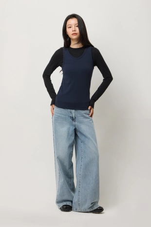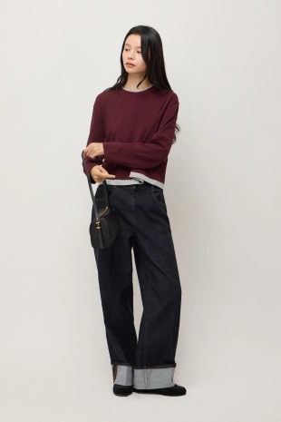 레이어드 턴업 소매 니트