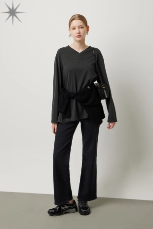 딥 변형 브이넥 니트