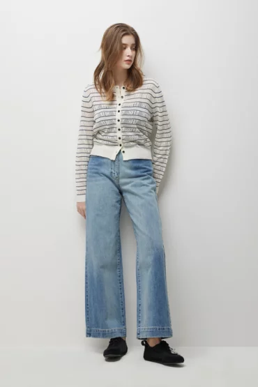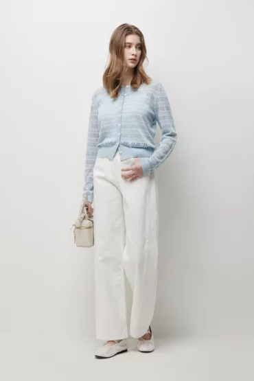 [Online Exclusive] 레이스 조직 스트라이프 니트