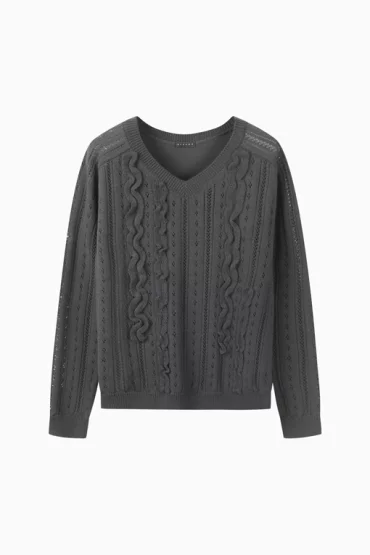 [Online Exclusive] 끈 슬리브리스 골지 니트
