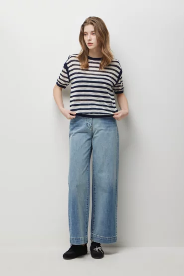 [Online Exclusive] 스트라이프 5부 소매 니트