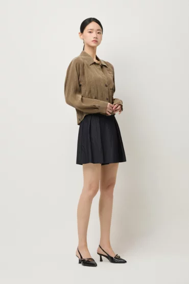 [Exclusive] 스웨이드 히든 버튼 셔츠