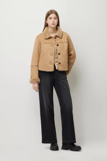 스웨이드 시어링 배색 페이크 레더 점퍼