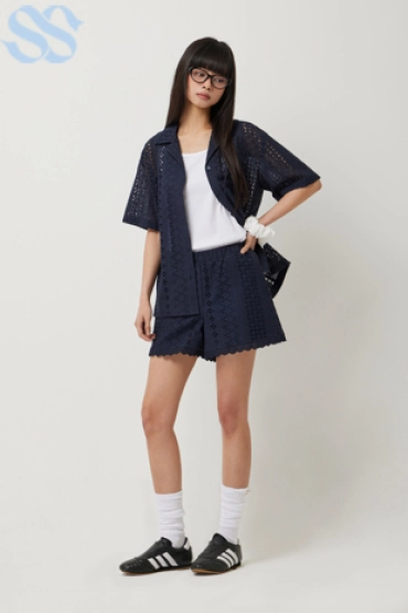 SIS 비비엔 아일렛 레이스업 포켓 셔츠