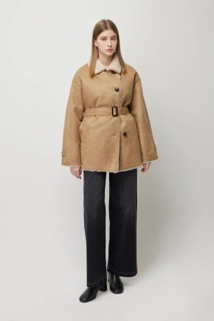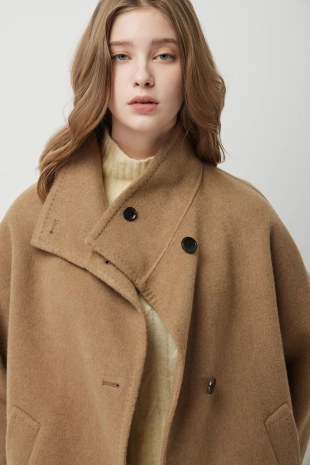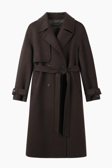 [Online Exclusive] 아미고 하이넥 벨티드 미디 코트