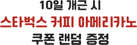 - 스타벅스 커피 쿠폰은 10회 개근 고객 대상 총 100명 랜덤 즉시 당첨되며, 1월 31일 회원정보에 등록된 휴대폰번호로 일괄 지급해드립니다.