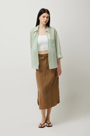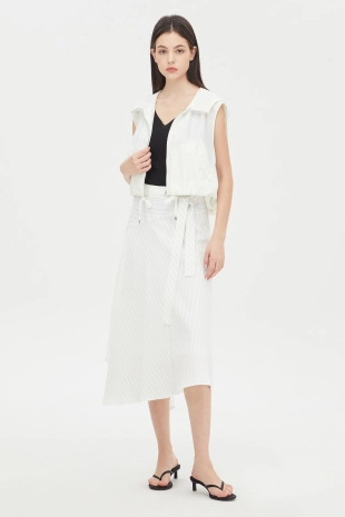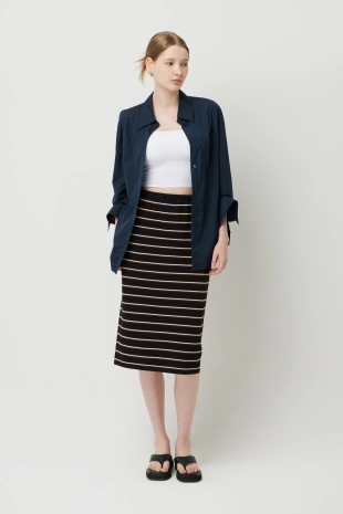 허릿단 벨트 장식으로 포인트를 준 H라인 롱 스커트.