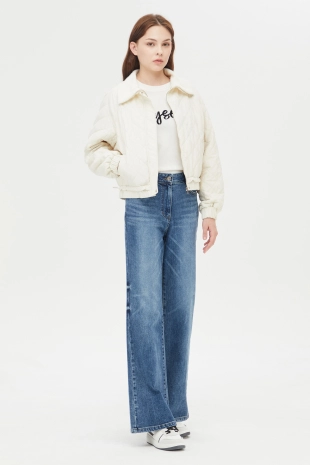 드롭 숄더에 루즈한 핏라인과 끝단의 밴딩으로 볼륨감있는 실루엣 연출.