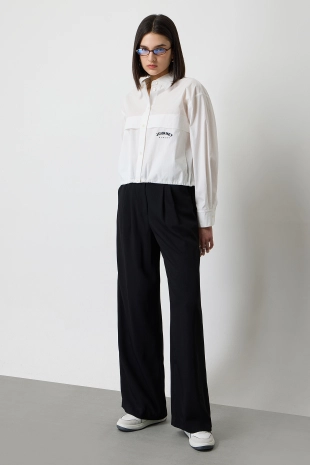변형 아웃포켓과 심플한 레터링 디테일로 포인트를 줌.