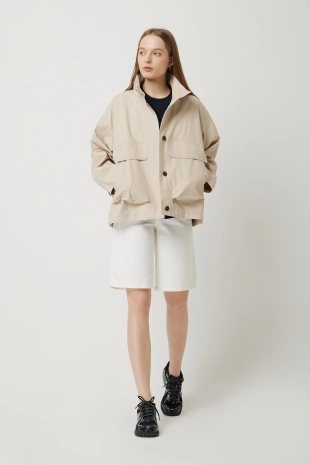 코튼 100%의 코팅 소재로 은은한 광택감이 돋보이는 점퍼.
