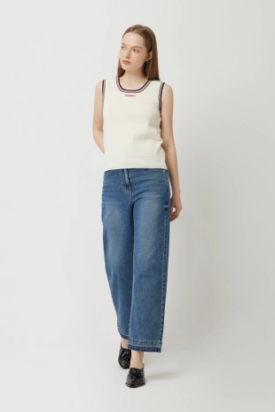 롱슬리브 티셔츠와 배색의 슬리브리스 티셔츠를