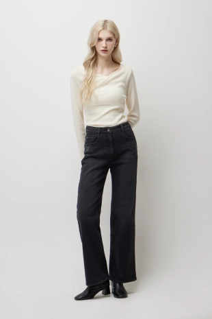 어깨라인 턱으로 자연스럽게 주름지는 카울넥 쉐입이 돋보이는 티셔츠.