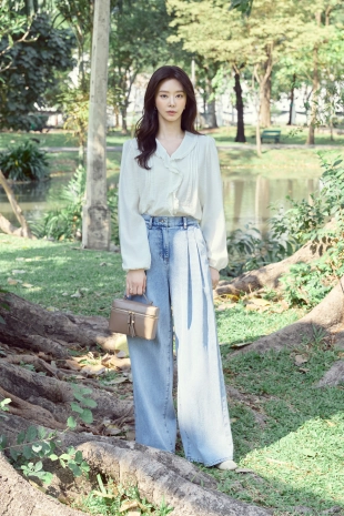 하늘하늘한 텍스쳐가 돋보이는 블라우스.
