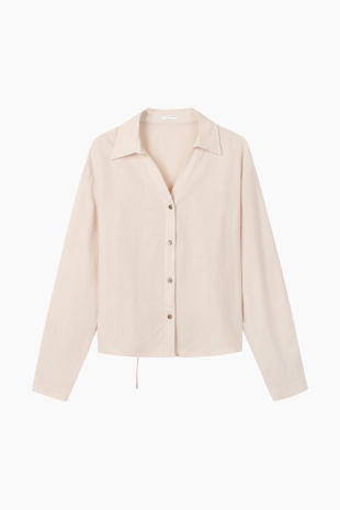 오픈 카라로 페미닌한 무드가 드러남.