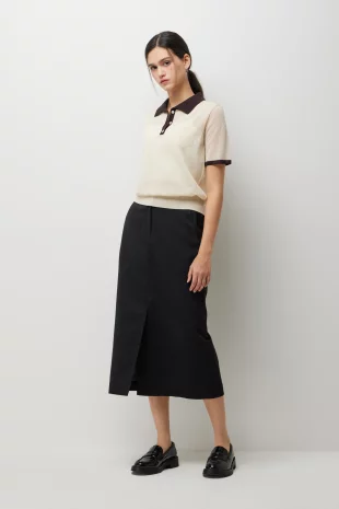 사이드 콘솔 지퍼로 심플한 여밈 구조를 보여줌.