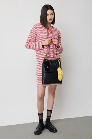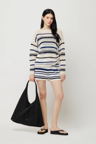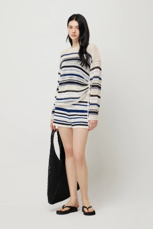 플로라 스트라이프 벨티드 사선 절개 스커트