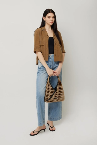 SIS 비비엔 아일렛 레이스업 포켓 셔츠